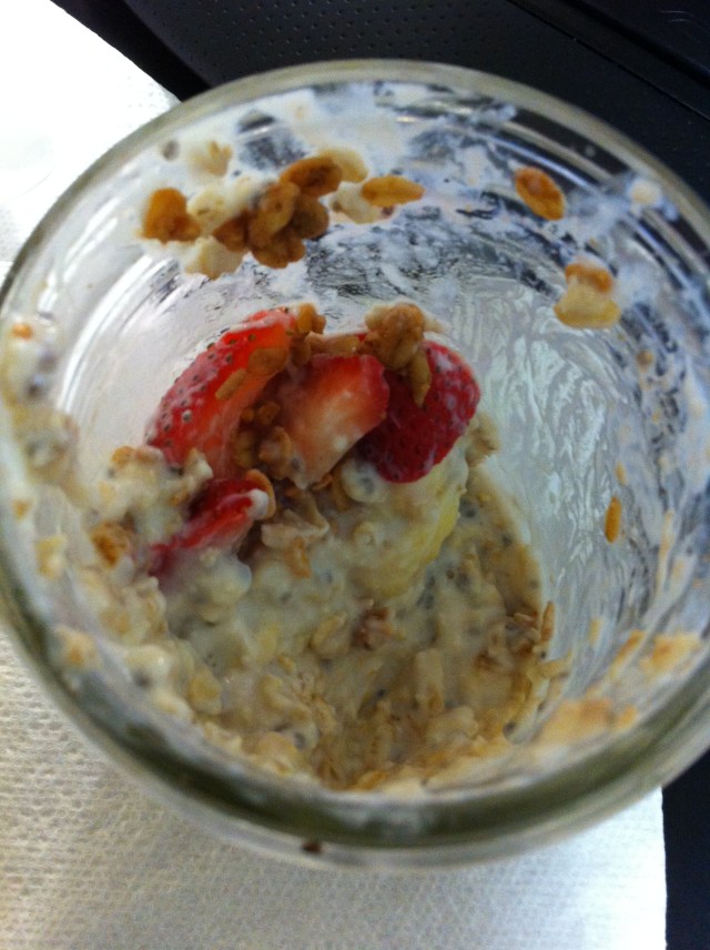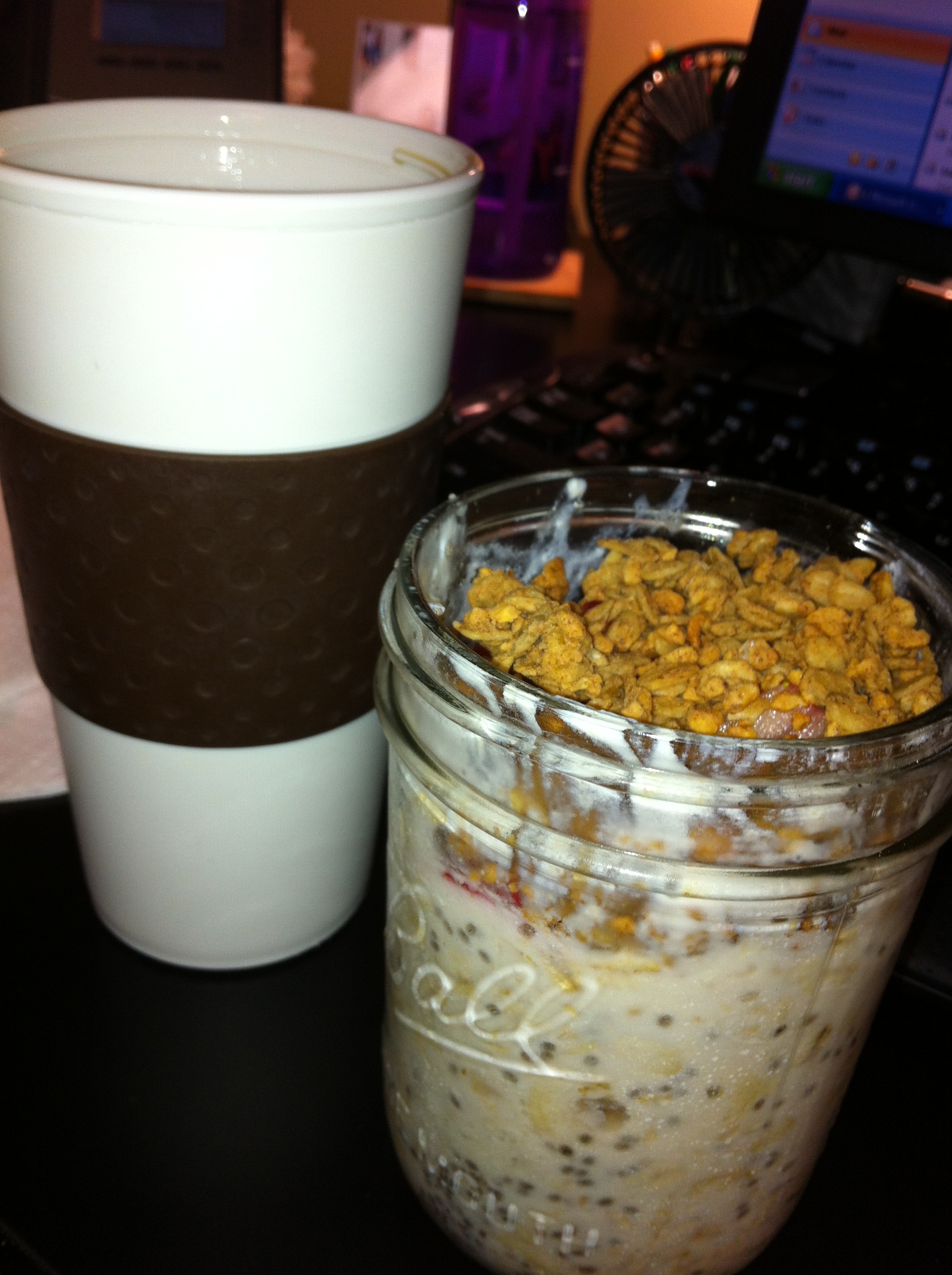 I quickly ate a some whole wheat toast with peanut butter and chia seeds and gulped down a cup of black coffee.
