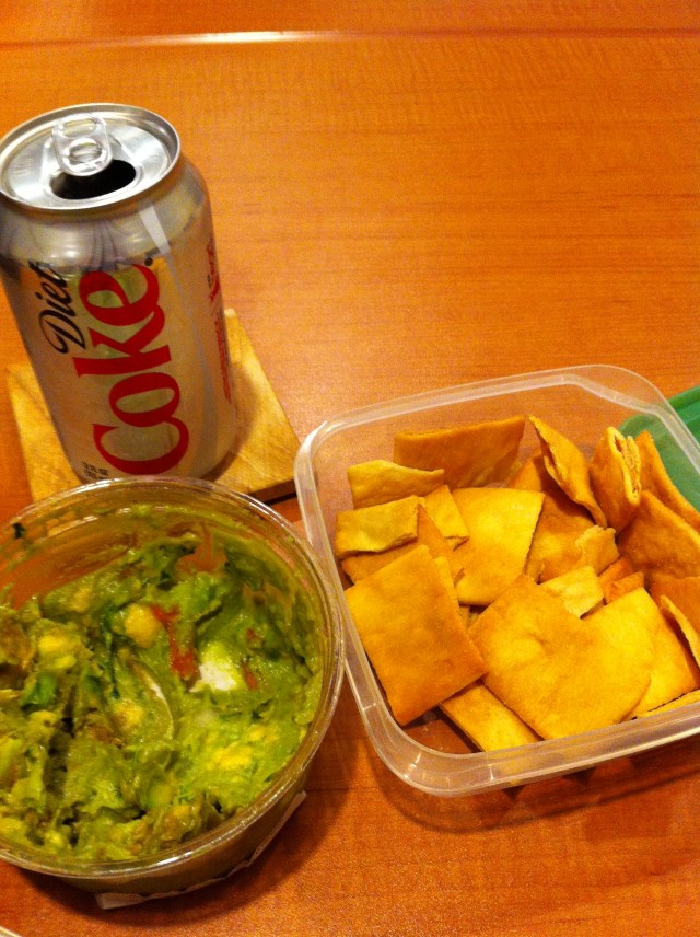 Obvi the best part of lunch: guac from Whole Foods and wheat pita chips.