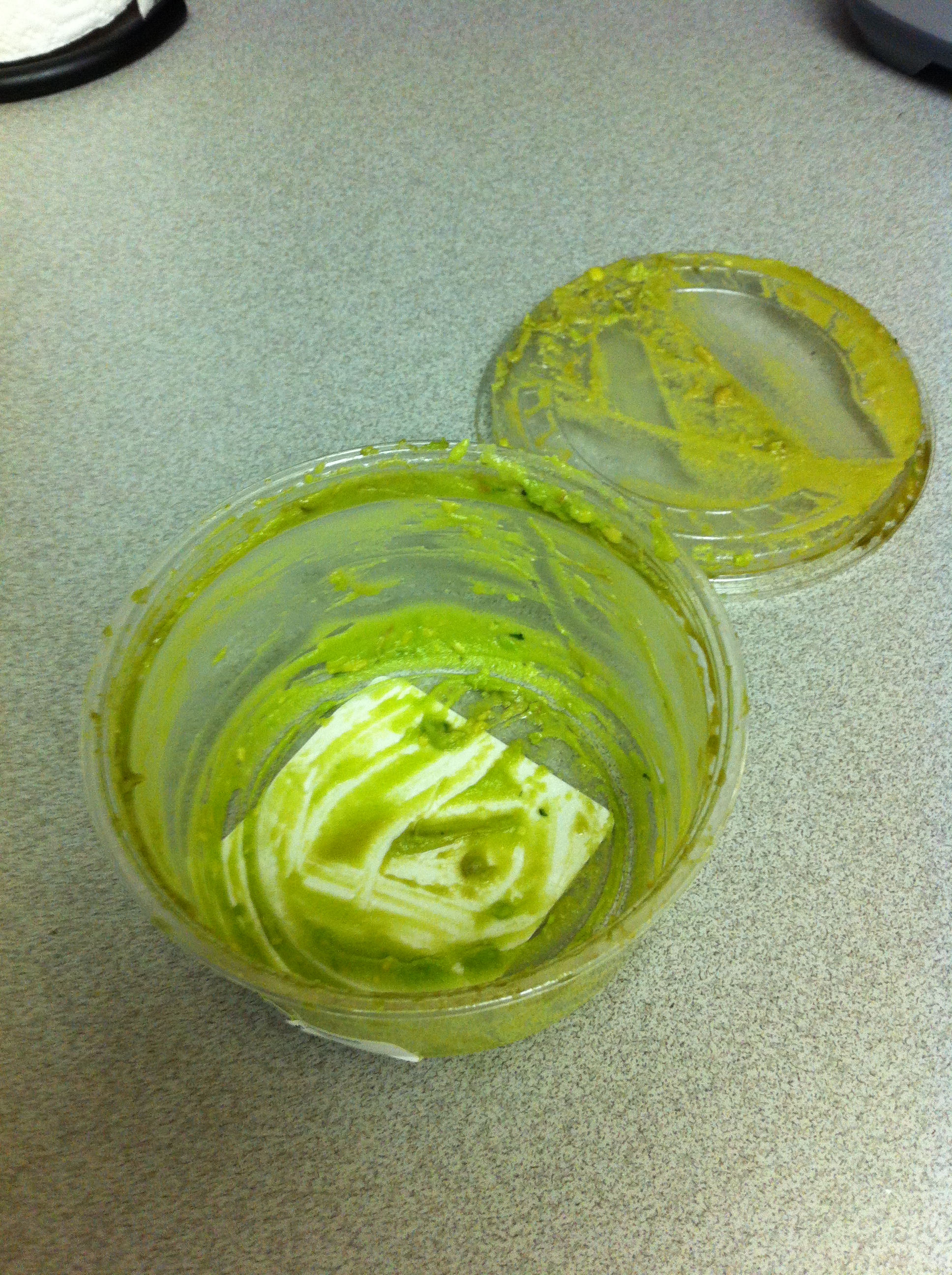 And the best afternoon snack ever. It’s almost gone! (Yes, I did successfully eat an entire tub of Whole Foods guac in less than 24 hours. Not ashamed.)