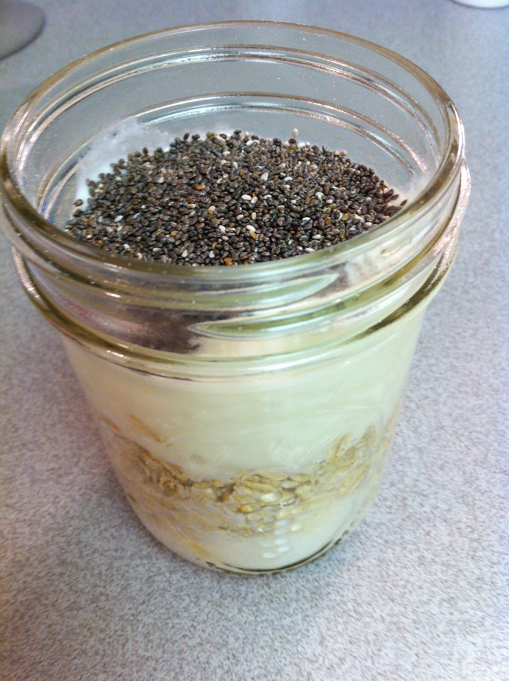 The chia seeds really help the oats soak up the dairy. Actually, I don’t know exactly what they do, but you need ’em in overnight oats.