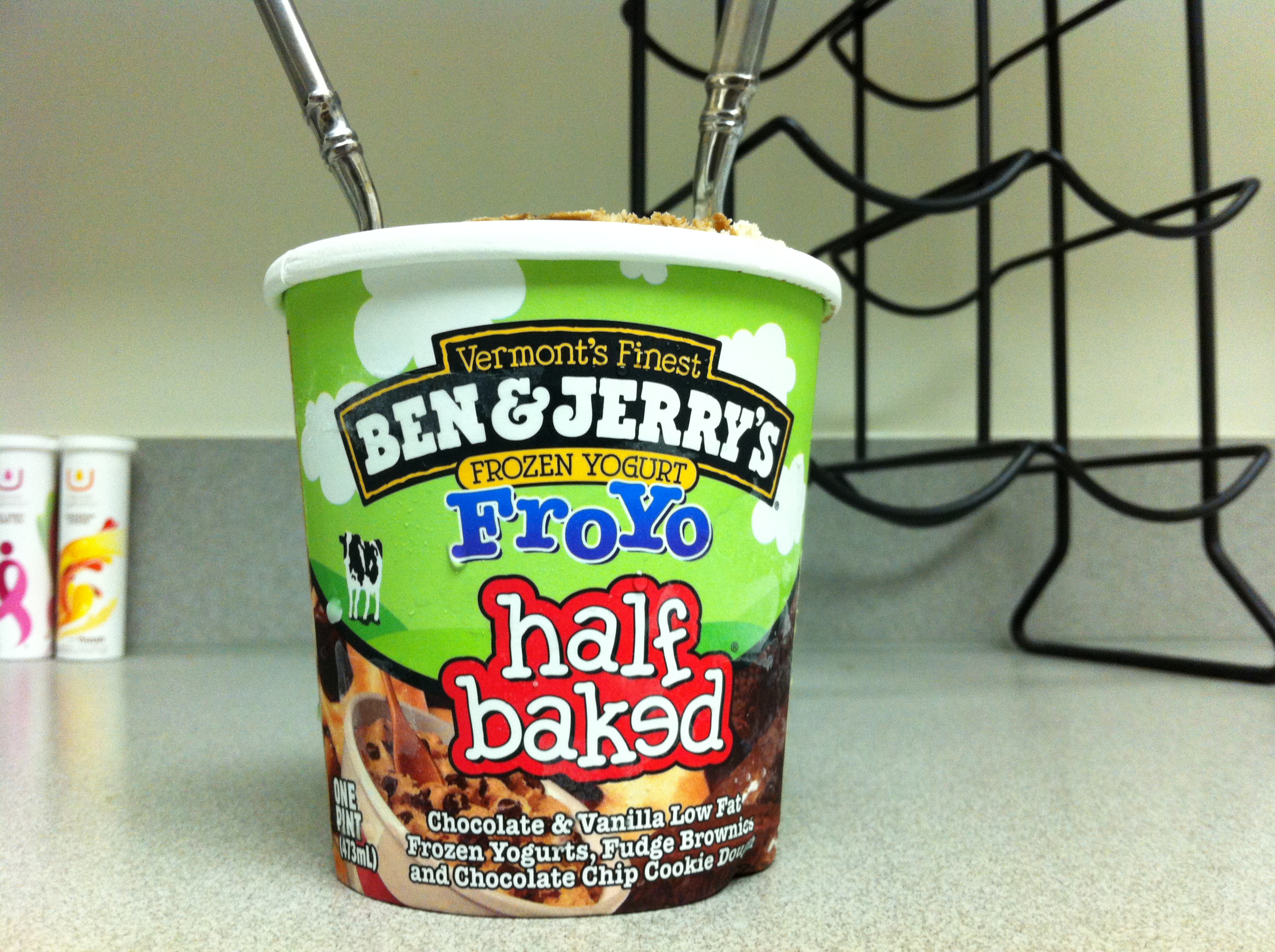 I’ve got a soft spot in my heart for Ben and Jerry’s ice cream/froyo because my very first job in high school was being an ice cream scooper at Ben and Jerry’s. We got to take a pint home a day and I would always do half brownie batter and half chocolate chip cookie dough. It’s my absolute favorite.