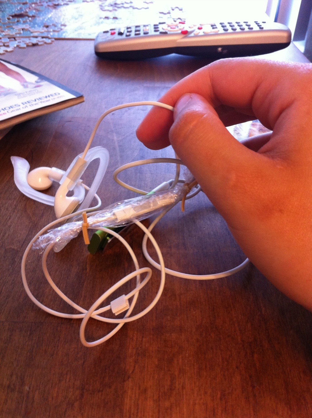 I did miss my music though, especially toward the end of the run. I don’t know if I should buy a new set of iPod shuffle headphones and re-try the DIY method, or if I should invest in some heavy duty waterproof headphones with a remote/compatible with iPod shuffle 3rd generation (which I have yet to find) or what.