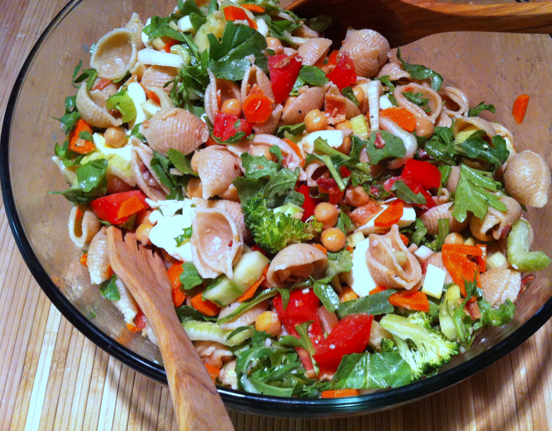 On Sunday afternoon I stopped by my mom’s house and was pleasantly surprised to find this whole wheat pasta salad waiting for me. I’ll have to get the recipe from her soon to share.