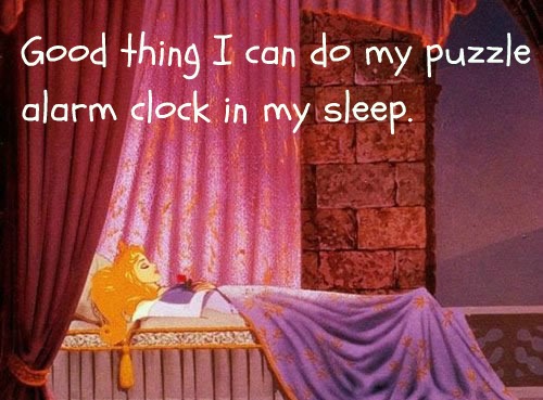 For fear of me sleeping through exams in college, my dad bought me a puzzle alarm clock. The batteries were screwed in to the side of it and you had to put a four-piece puzzle back together before the damn thing would shut up.
