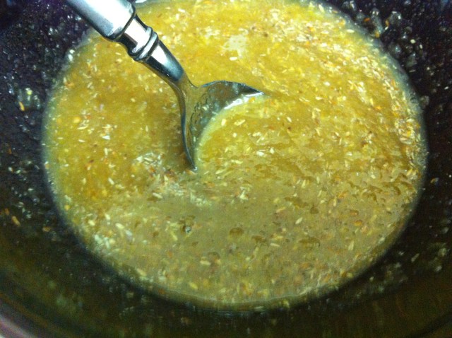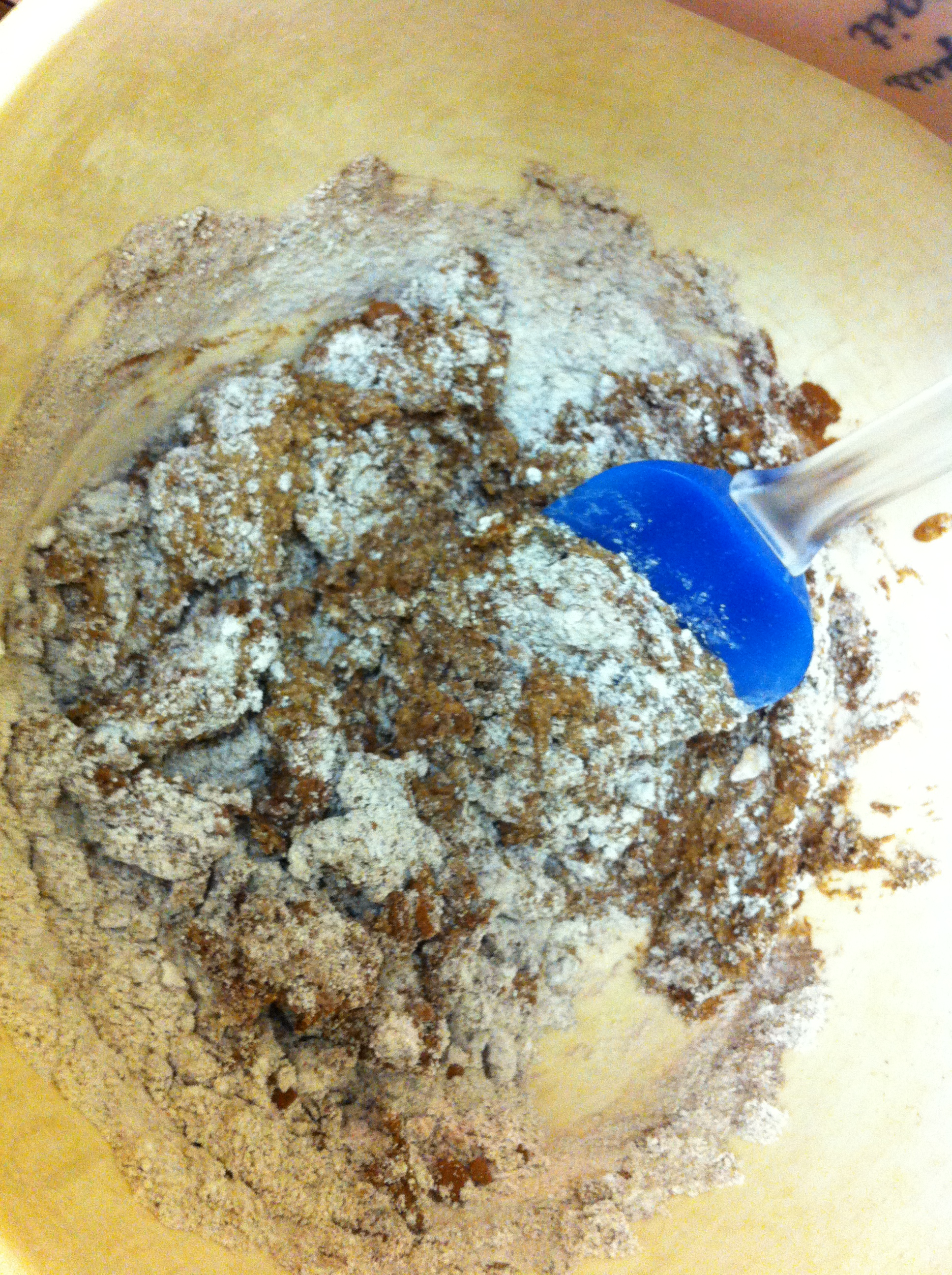 Dump the ground flax seed into the water in a little bowl and mix it together. Let it sit for 15 minutes while you’re making the rest of your batter.