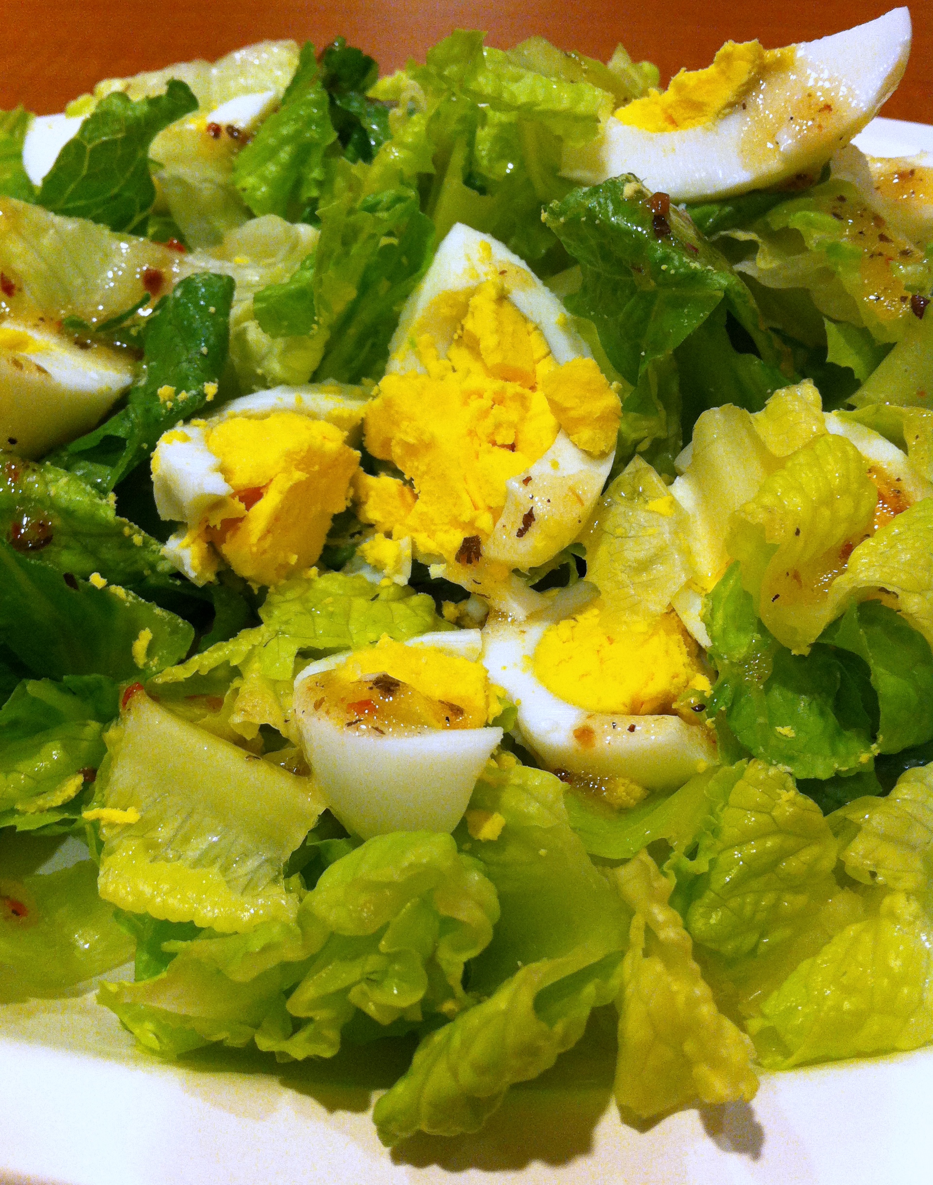 Lunch was an oldie but goodie: romaine lettuce with hard-boiled eggs and Italian dressing. Maybe one day I will eat meat for my protein source. But then I’ll have to cook it first…