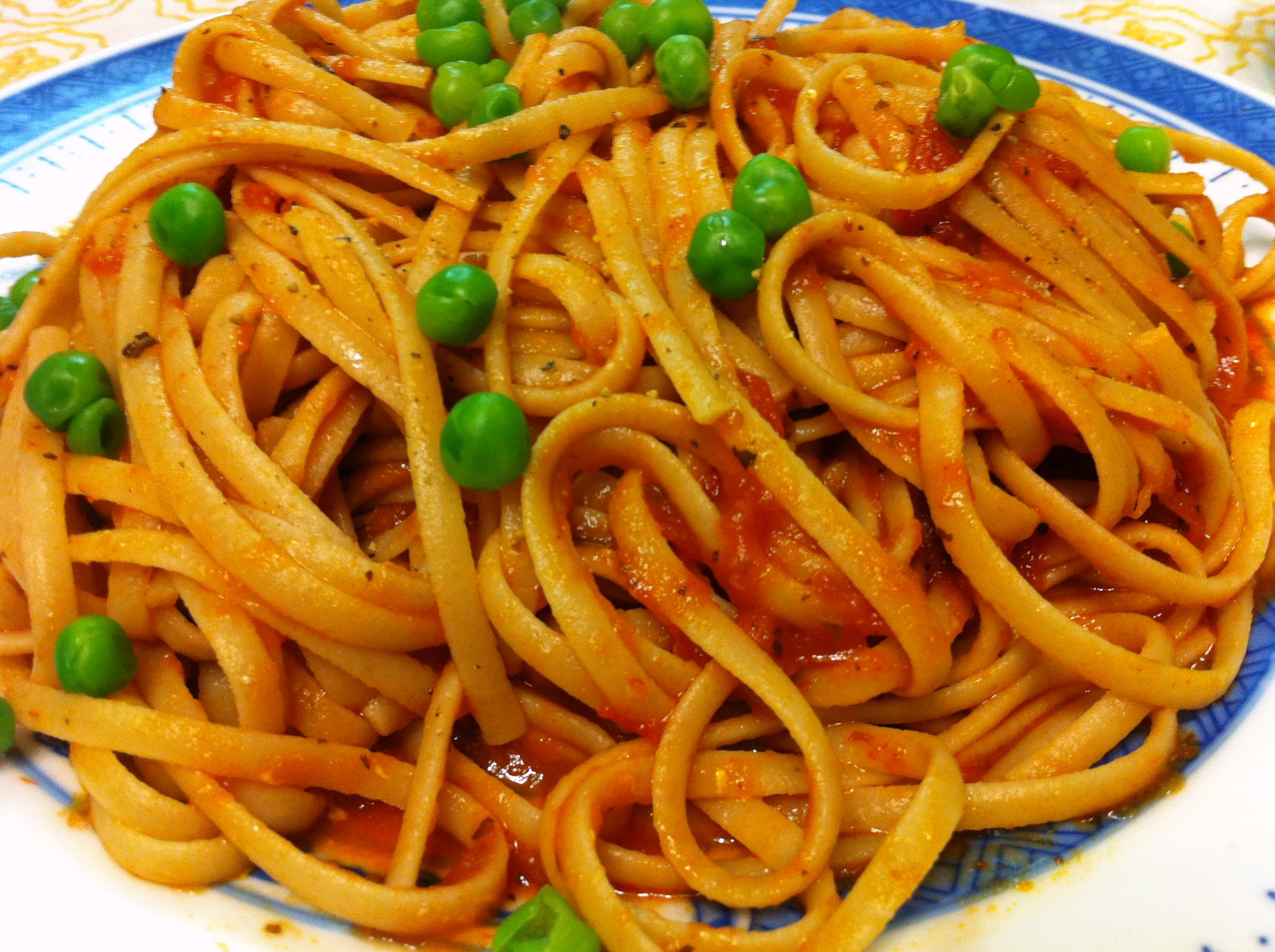 It seems that any sweat inducing activity entitles me to refuel with lots of carbs. Simplicity was the way to go last night! I gobbled down whole wheat pasta with tomato sauce and peas.