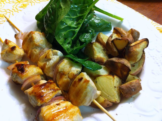 Spray the grill with non-stick cooking spray. Place the skewers on the grill for about 6 minutes, rotating occasionally.