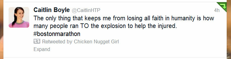 Running is about love and peace and hope and I know that from experience. That’s why this upsets me so much. Because running is something that I find love and peace and hope in. Marathons and other races are a way to collectively communicate this joy together, and it disgusts me that this act of terror happened during it.