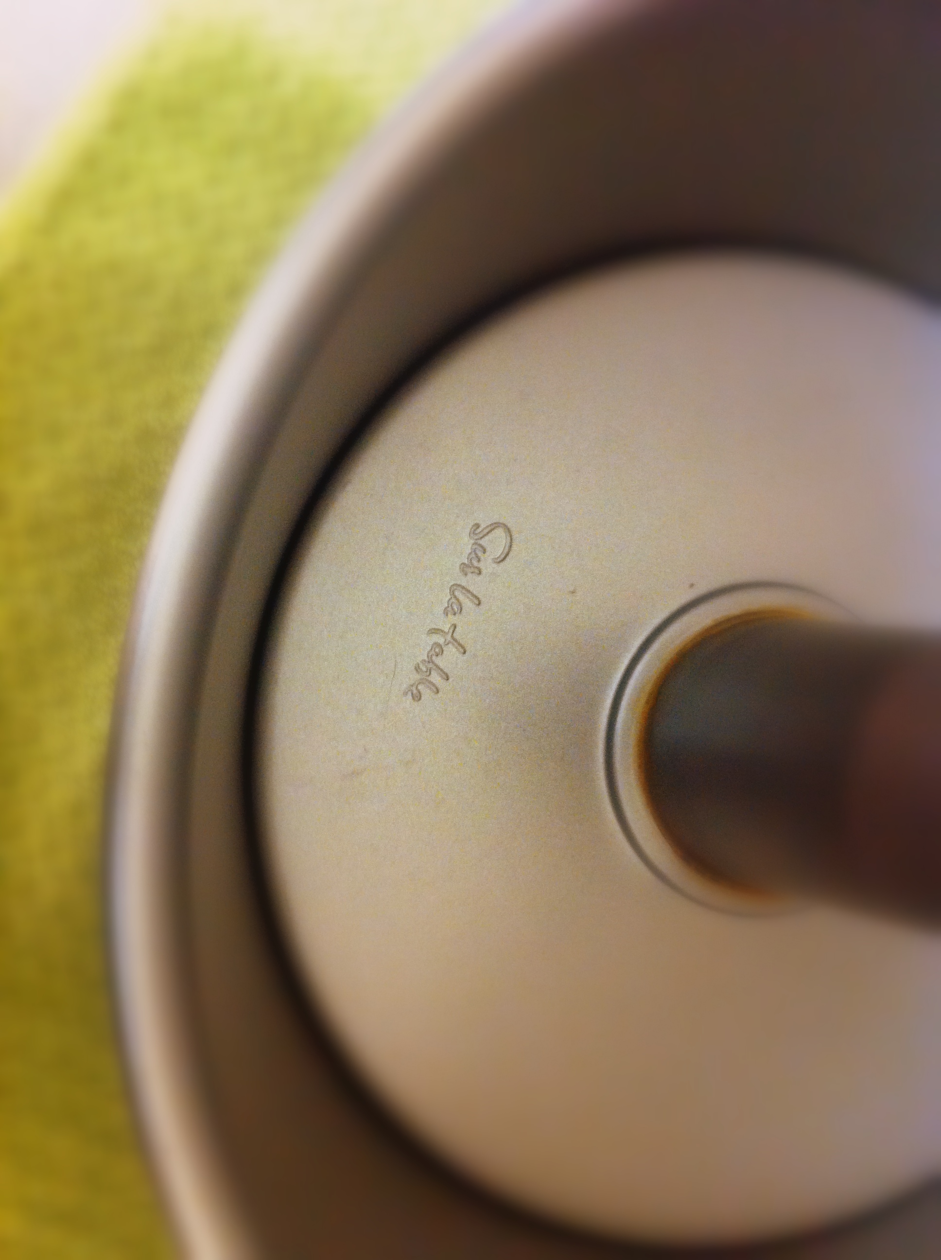 « Being re-gifted a fancy Sur La Table angel food cake pan. »