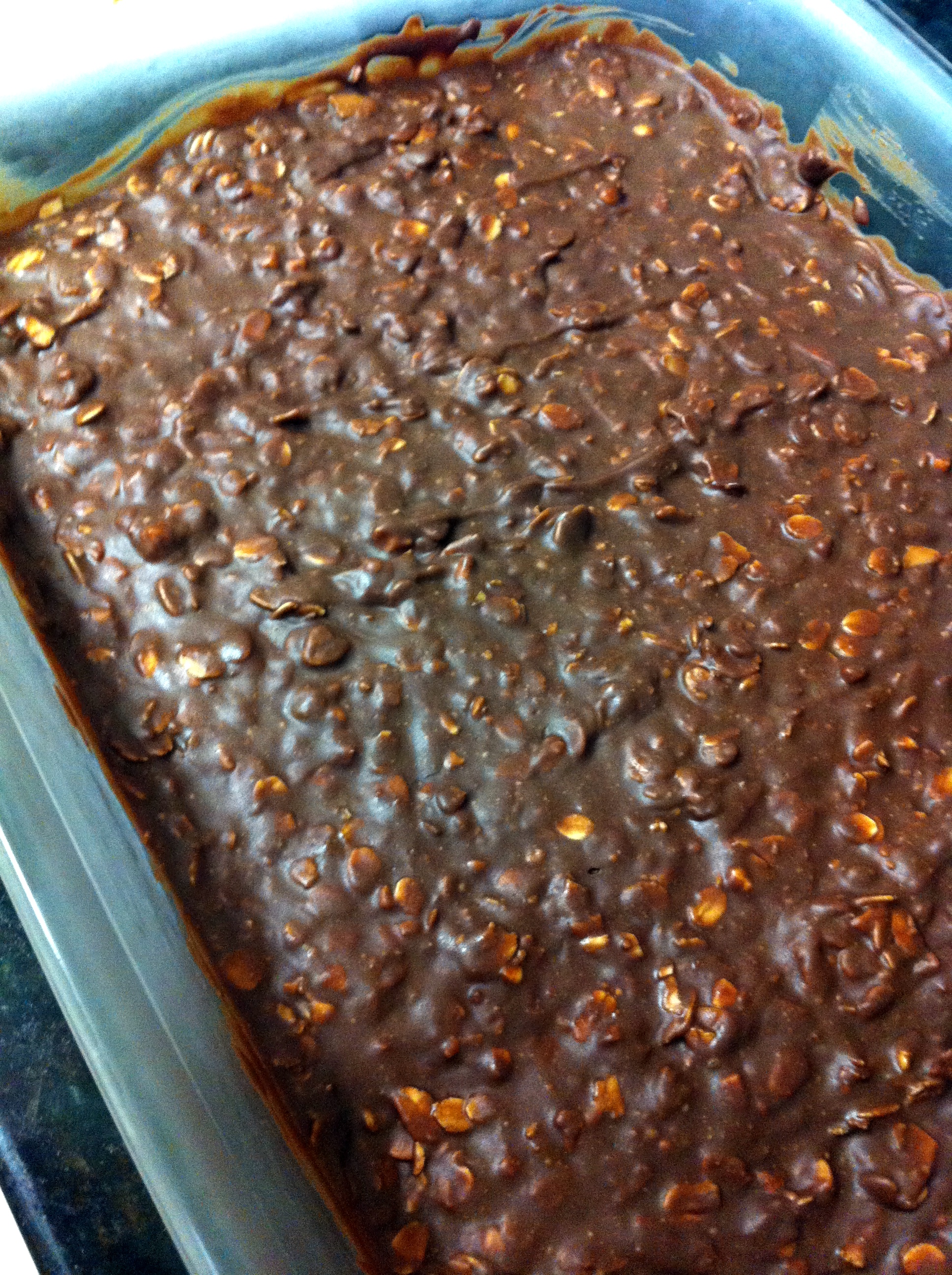 Pour into pan and cool in the fridge until hardened.