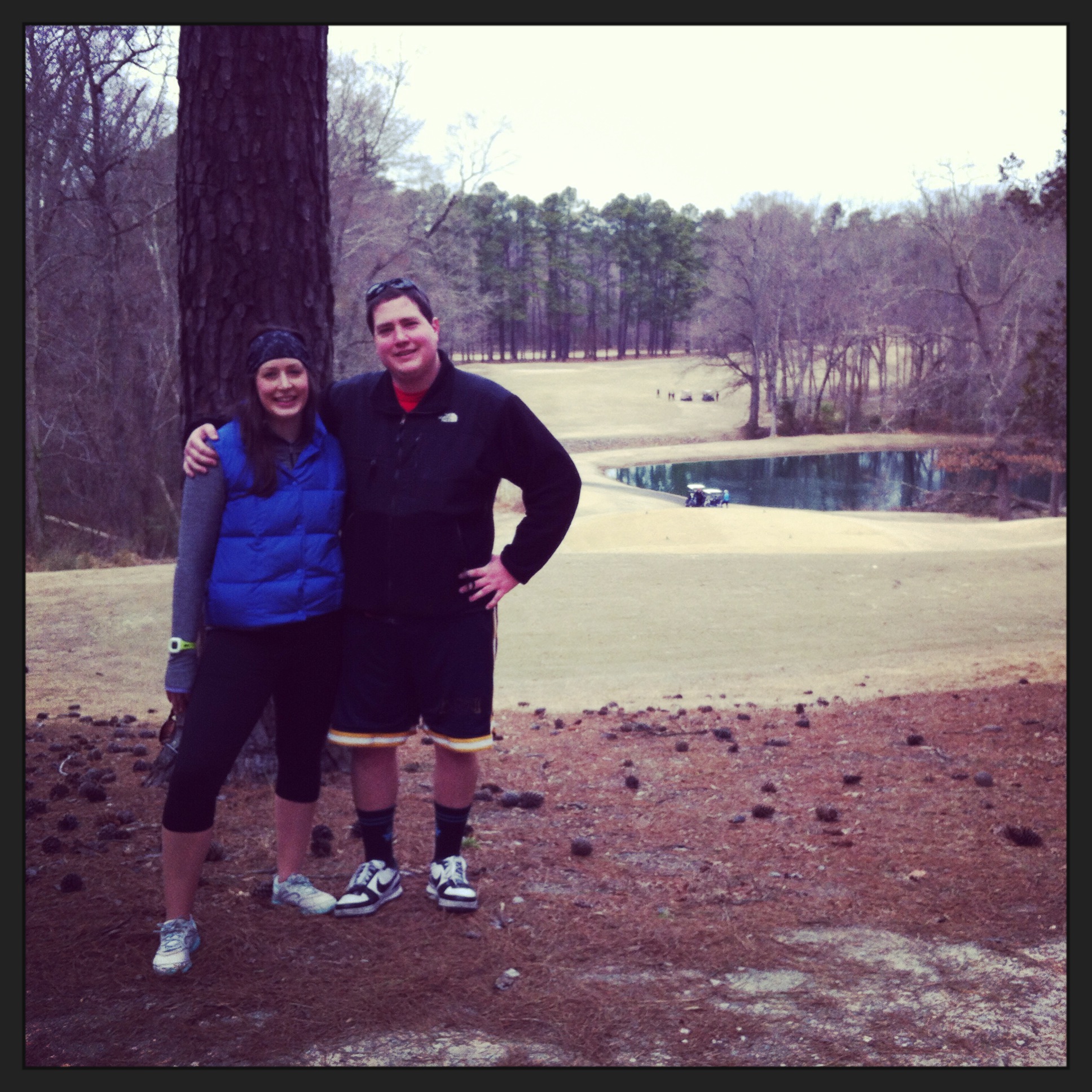 We all went on a morning walk in the Duke Forest. The pine trees are sooooo tall.